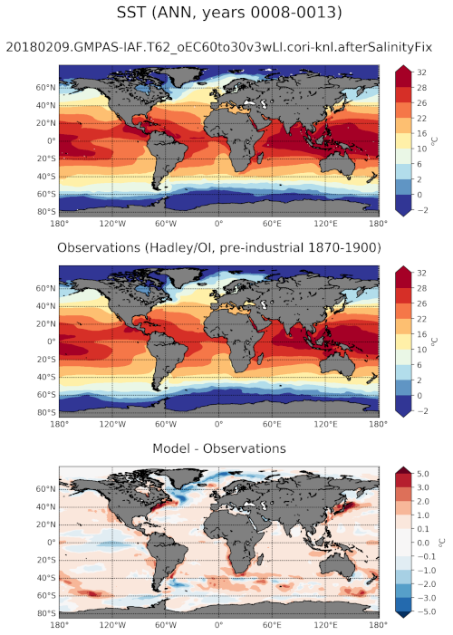 By default, a “preindustrial” climatology is computed for comparison with the model results. For simulations covering a different time period, the range of years (obsStartYear and obsEndYear) should be updated.