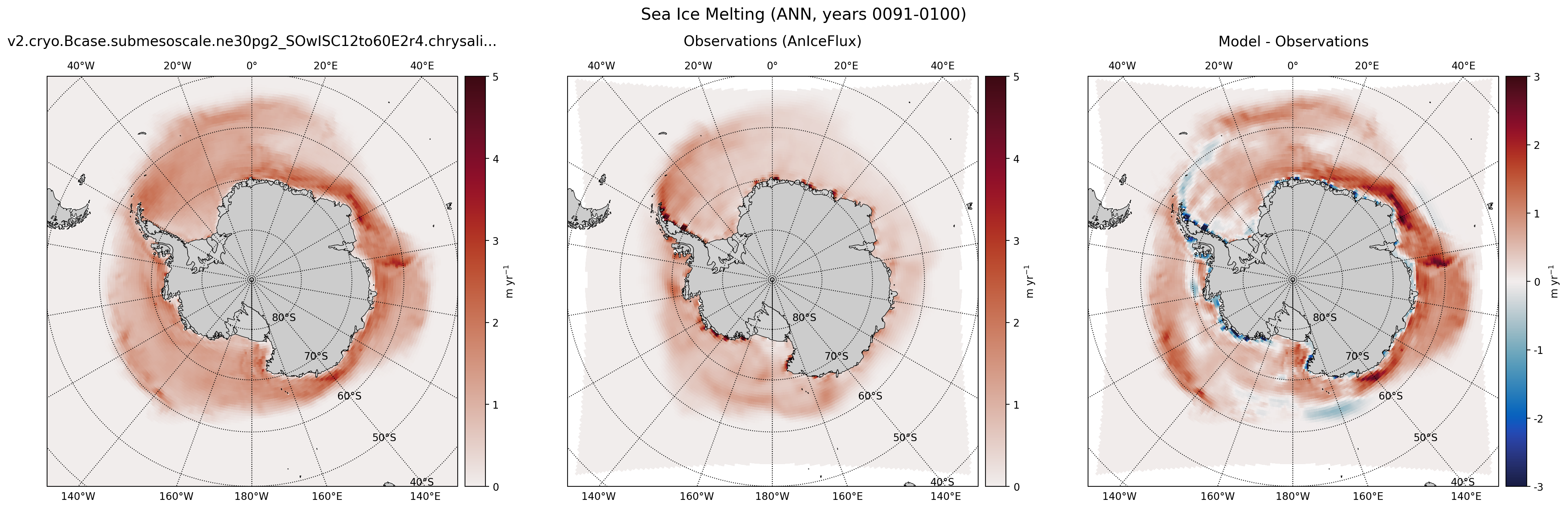 An analysis task for plotting maps of Antarctic sea ice melting against observations.