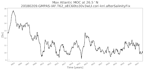 The MOC time series is plotted with a 12-month moving average by default (taking out noise and the annual cycle). For more details, see Moving Average.